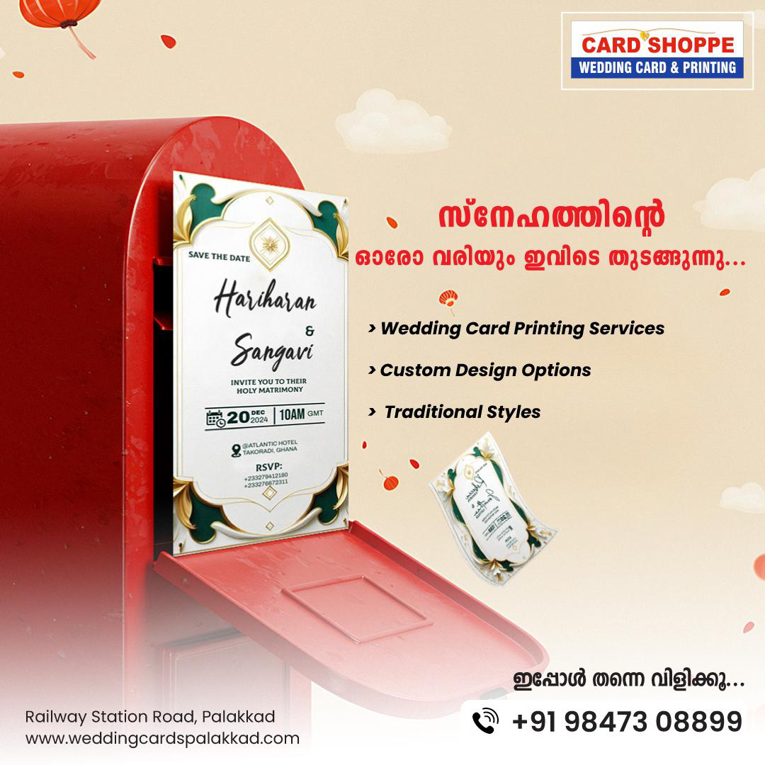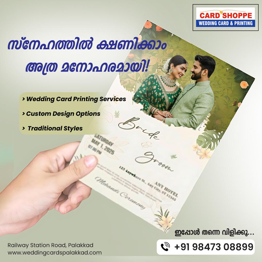 As your local wedding card shop in Palakkad, we are here to provide personalized service and support throughout the entire process.